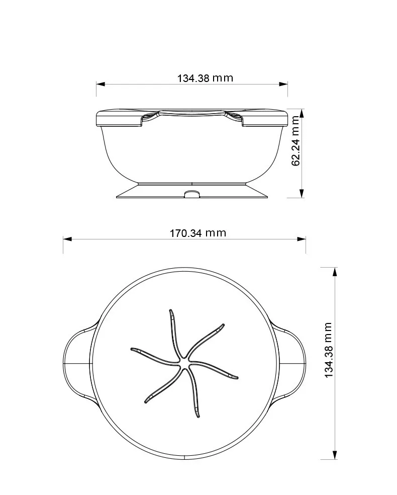 - The lid and suction base keep snacks secure and off dirty surfaces.