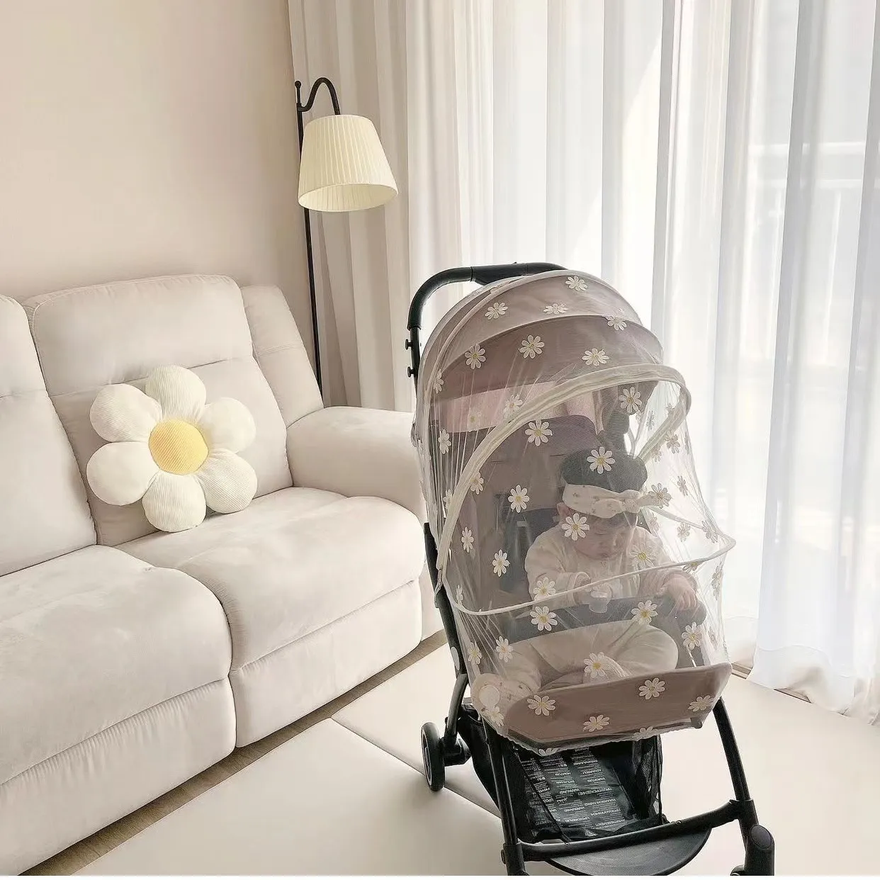 Made from high-quality breathable mesh fabric, the mosquito net allows air to circulate freely while keeping insects out. The lightweight material ensures that your baby stays cool and comfortable on hot days, preventing overheating while still providing full protection from flying insects.