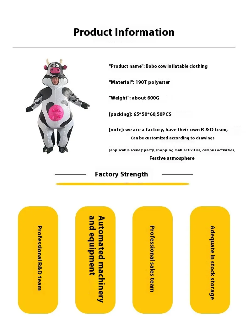 Size: Bobo cow inflatable clothing