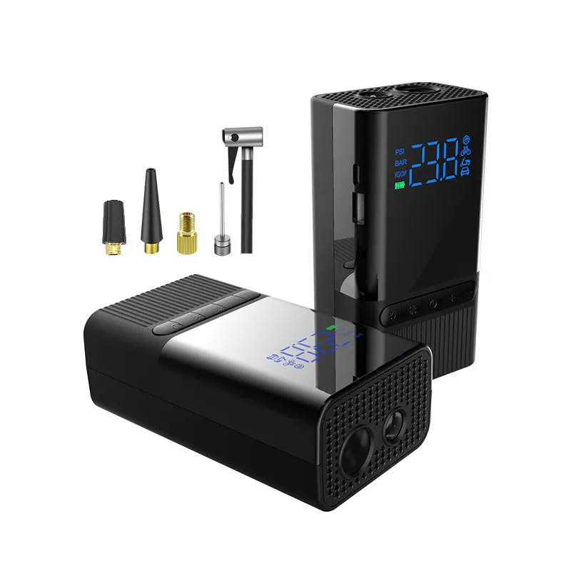 lithium batteries. When fully charged, you can inflate 3 car tires from 0-2.5bar; 12 motorcycle tires from 0-2.2bar; 20 bicycle tires with