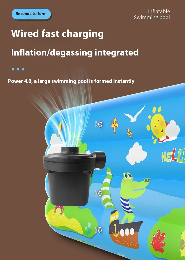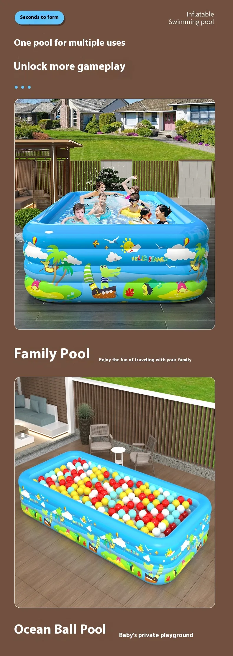 The Inflatable Swimming Pool features a multi-layered PVC or vinyl construction that resists punctures and maintains shape during use. Its wide rectangular or round design provides generous space for family activities, while the sturdy inflatable walls offer comfort and stability.