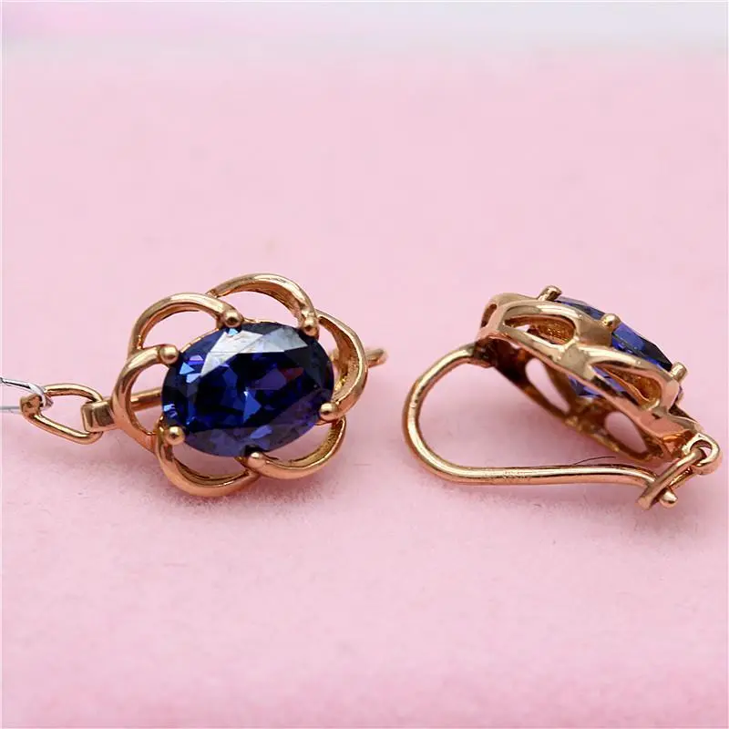 How to Wear the Inlaid Blue Stone Lace Purple Gold Earrings