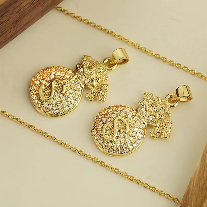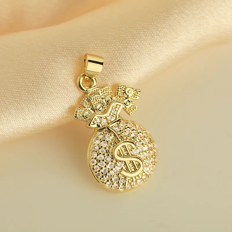 Inlaid Zircon Lucky New Year Wallet Copper Plated Pendant
