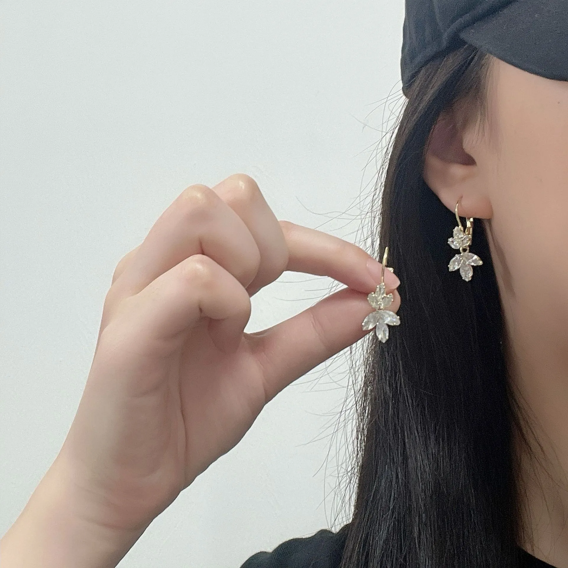 Inlaid Zircon Super Shiny Leaves Cold Delicate Earrings