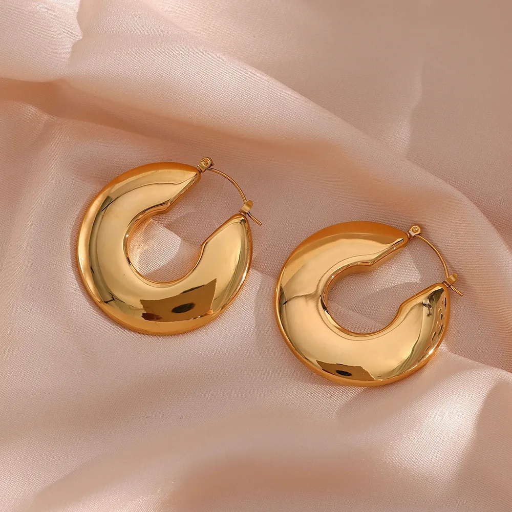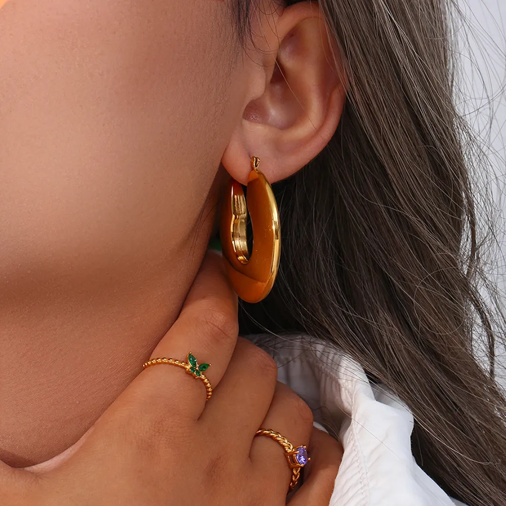 Color: Hollow flat ring earrings-Gold