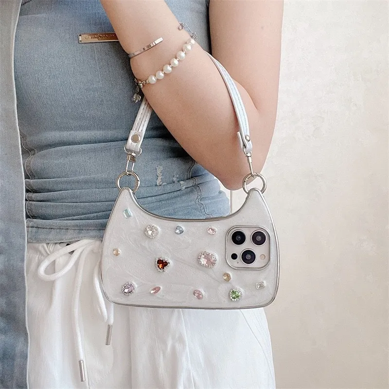 Ins Light Luxury Shining Diamond Gem Handbags Epoxy Phone Case