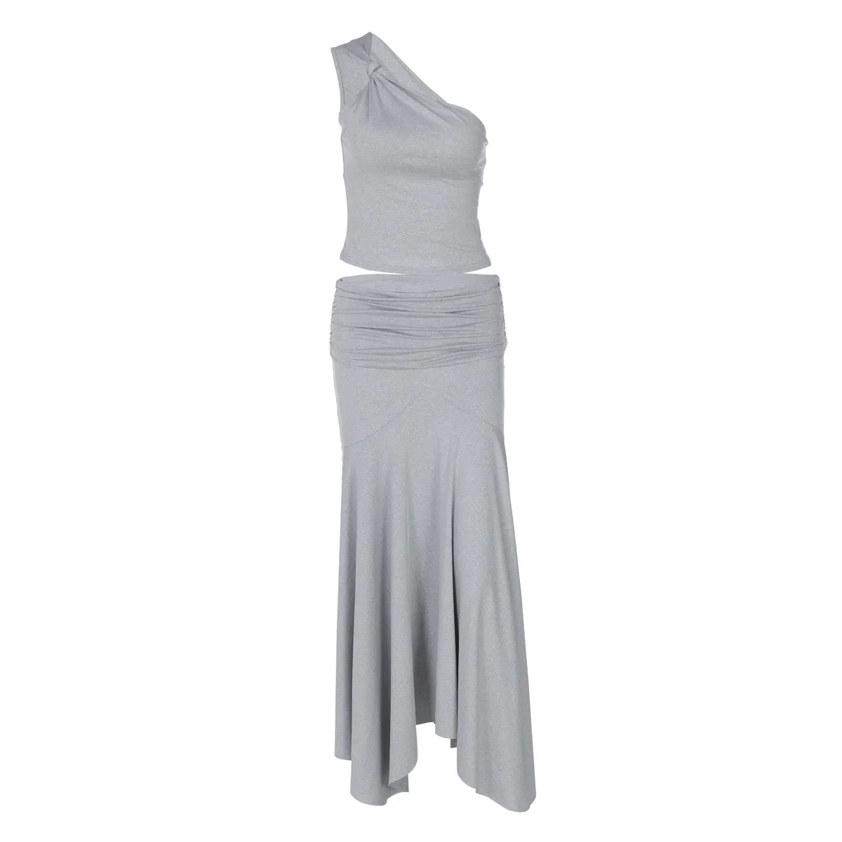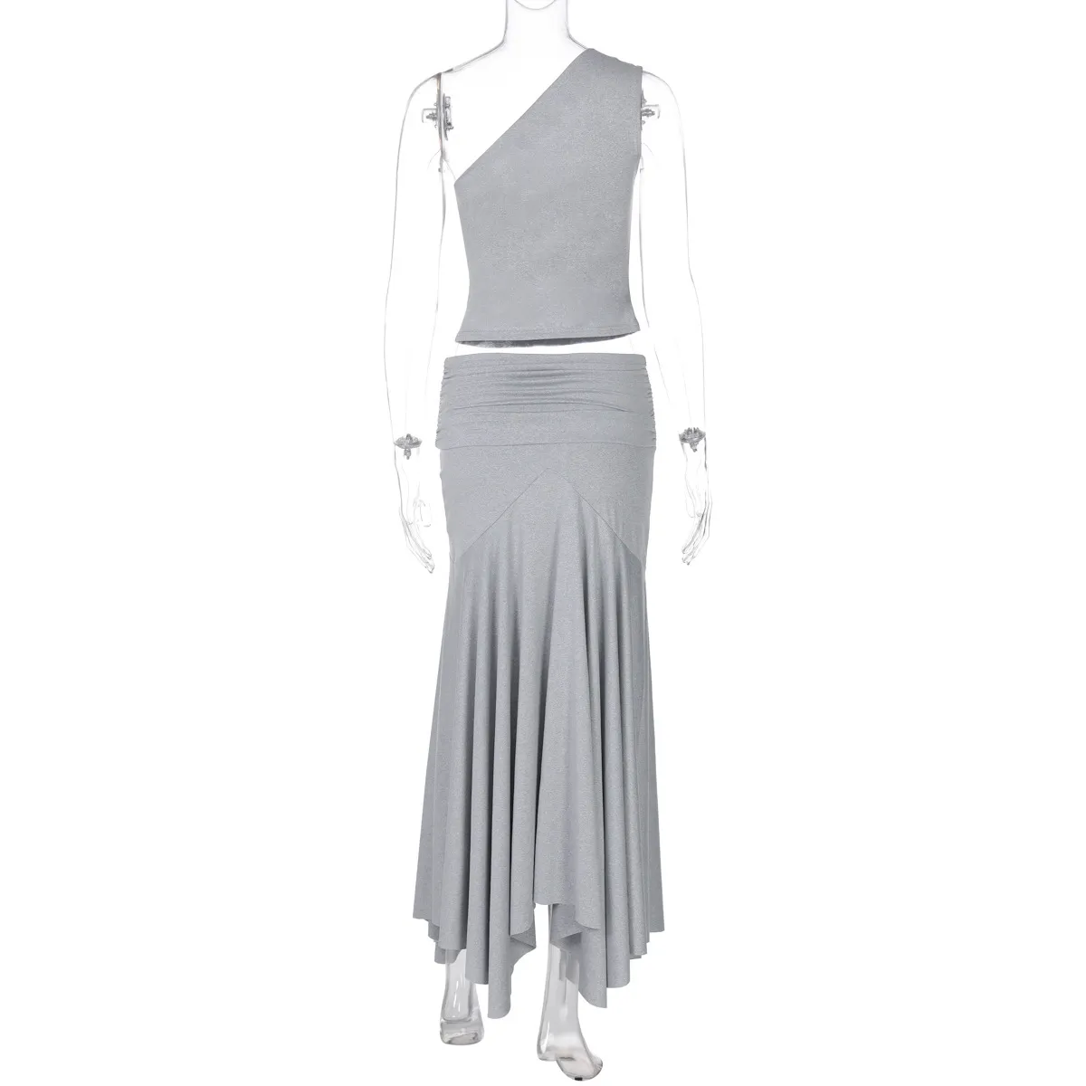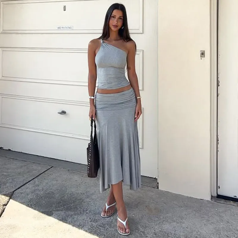Ins Style Women's Solid Color Sleeveless Vest High Waist Skirt Two-Piece Set: Elegant and Trendy for Every Occasion