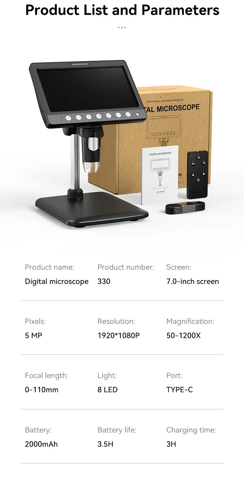 inskam Digital Microscope with 17.78cm HD LCD