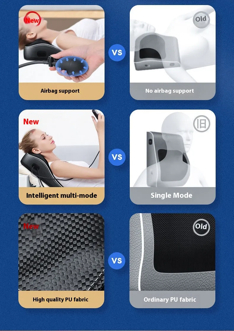 Equipped with intelligent massage nodes, heat functions, and adjustable intensity, this multifunctional pillow adapts to your needs. Its ergonomic design ensures optimal support while targeting specific muscle groups, mimicking the feel of a professional massage therapist. Easy-to-use controls allow you to customize massage modes, making it suitable for daily relaxation or post-workout recovery.