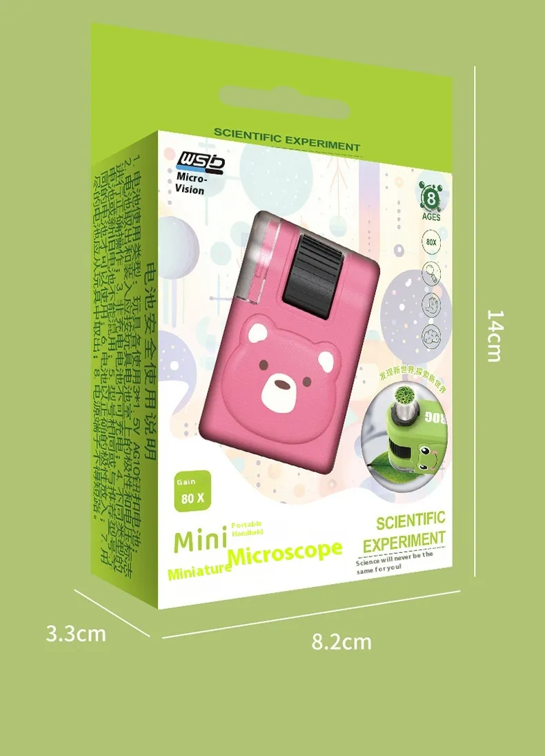The Internet Celebrity Portable Microscope Children’s Mini Scientific Experiment Outdoor Exploration toy is a wonderful tool to introduce children to the exciting world of science. Its compact size, high magnification, and ease of use make it ideal for young explorers, encouraging them to engage in outdoor activities and scientific observation. Whether for educational play or simply to satisfy their curiosity, this portable microscope is sure to inspire future scientists and naturalists.