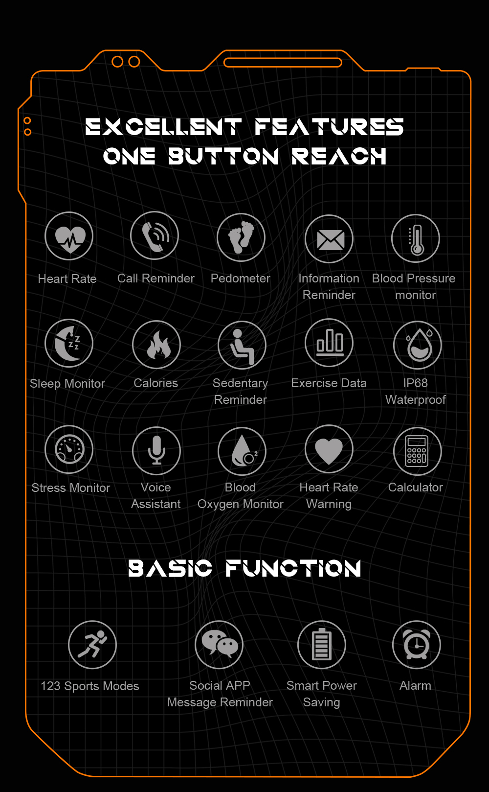 Your Smartwach is protected thanks to its IP68 Dust-proof design. It defends against