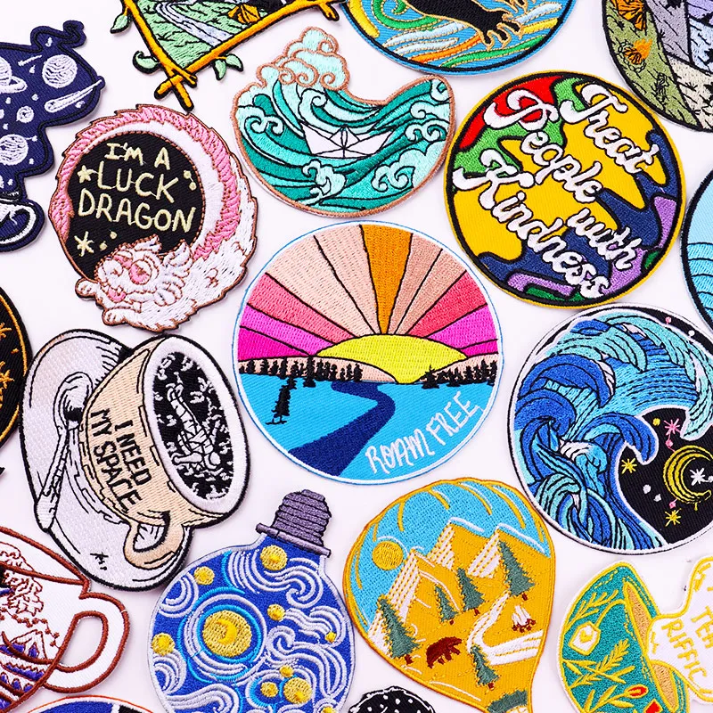 These patches come in many designs — from bold embroidered logos, fun icons, and graphics to plain fabric patches for simple repairs. They’re usable on garments like denim jackets, cotton shirts, backpacks, tote bags, hats, and other textile‑based accessories.