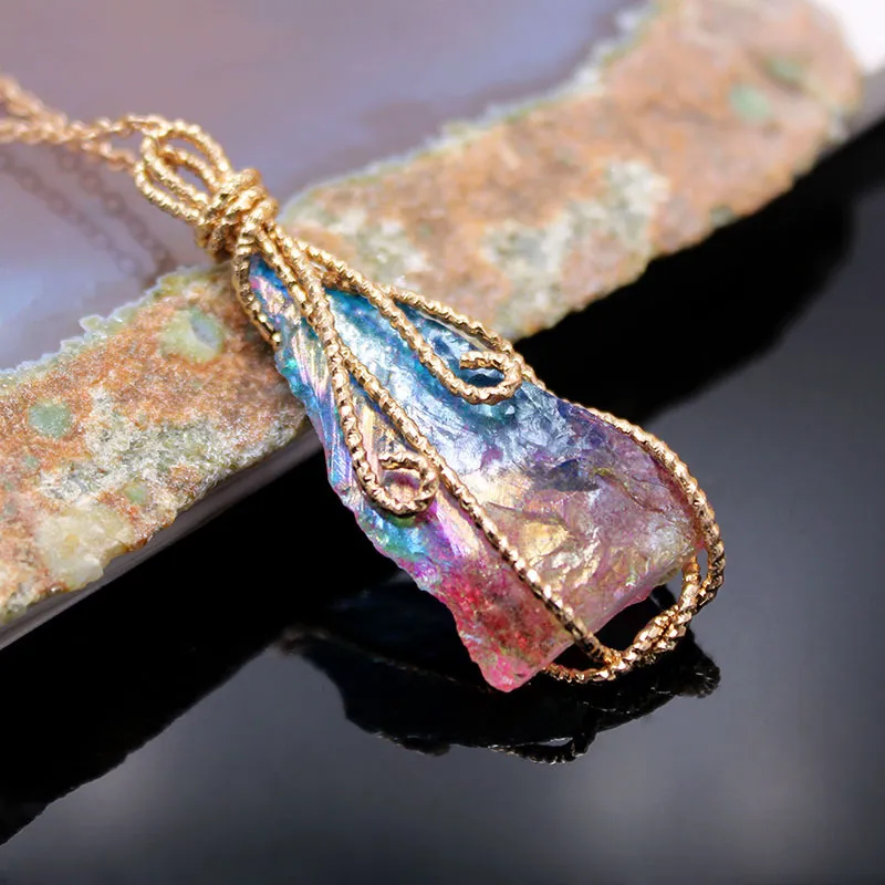 Irregular Crystal Pendant Colored Gemstone Handmade