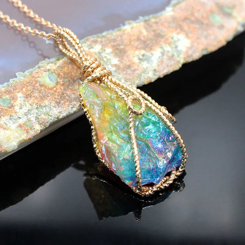 Irregular Crystal Pendant Colored Gemstone Handmade