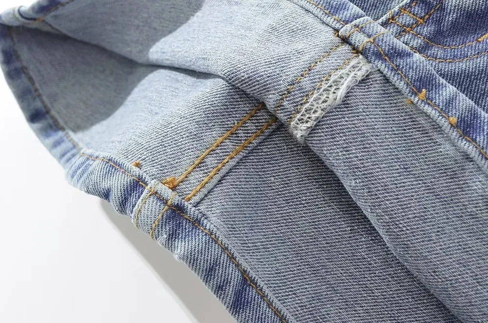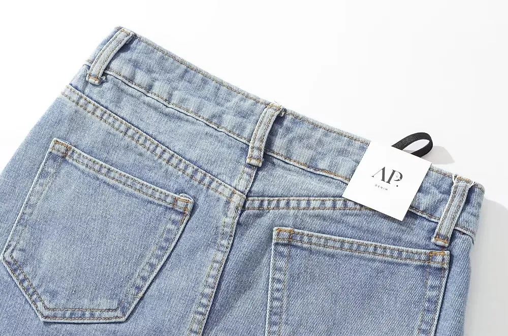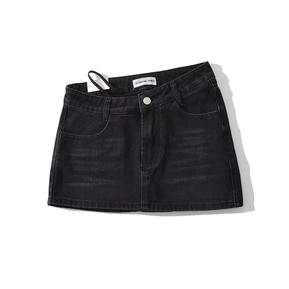 Irregular Hemline Design: The unique irregular hemline adds a modern, stylish twist to the classic denim skirt, giving it a