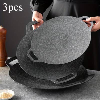 ITECHJOY 3pcs Versatile Non-Stick Cast Iron BBQ Grill Pan Set – Easy-Clean, Portable Frying Skillet for Outdoor Cooking