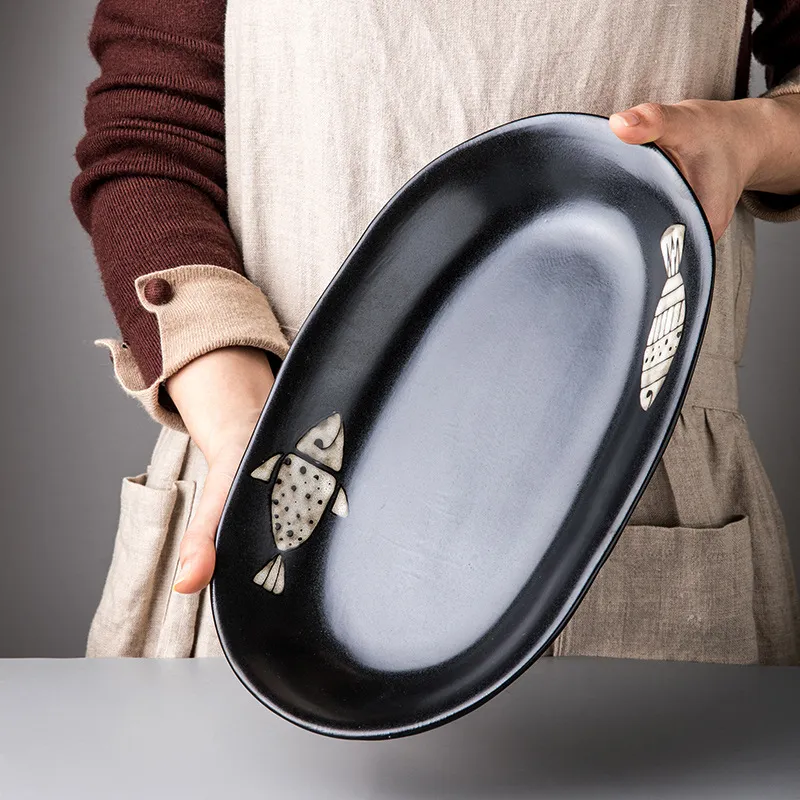 Color: 12 inch irregular oval plate-fish pattern