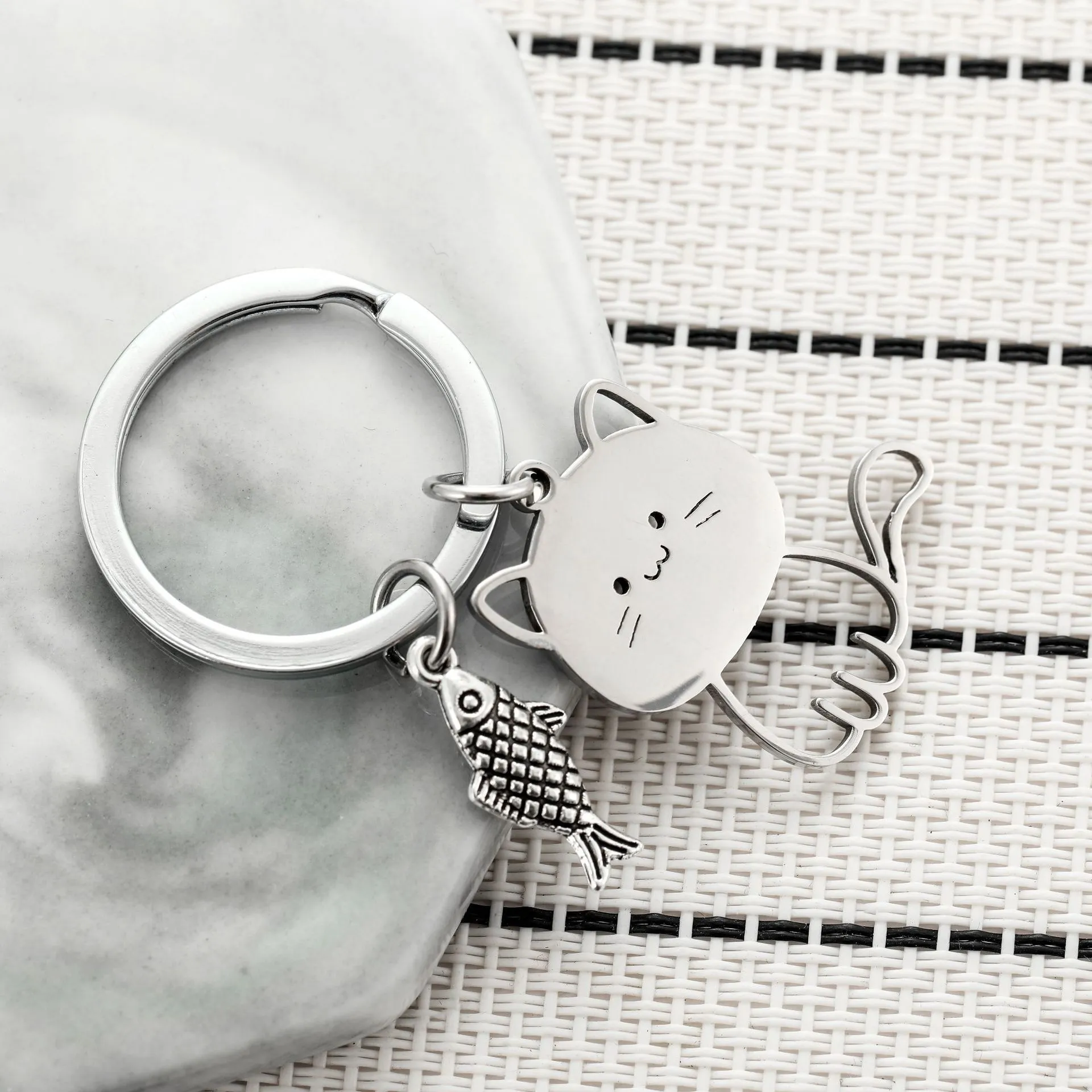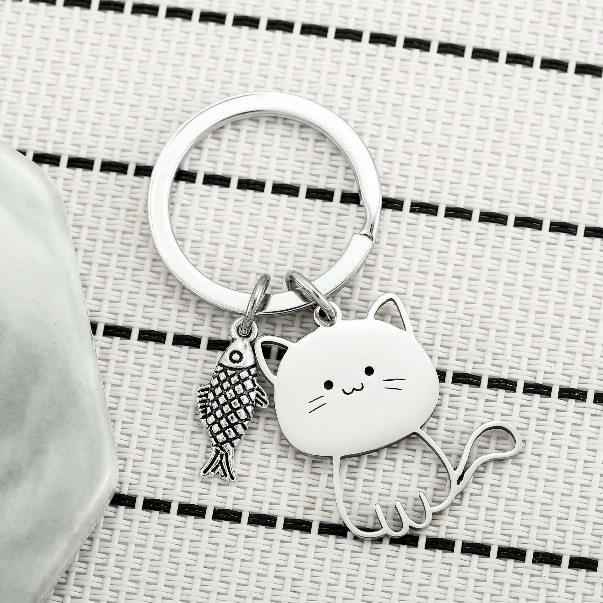 Japanese Kitten Eating Fish Cute Cartoon Key Button
