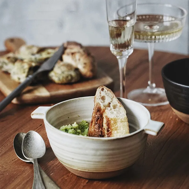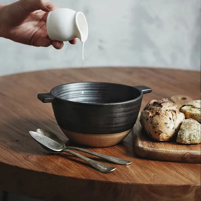 Elevate your dining experience with the Japanese Stoneware Amphora Bowl, a beautifully crafted piece of ceramic tableware that blends tradition with contemporary elegance. Inspired by the timeless designs of ancient amphorae, this bowl is designed to provide both function and aesthetic appeal, making it the perfect addition to any kitchen or dining setting. The vintage ceramic design is perfect for those who appreciate the art of Japanese pottery and seek to incorporate a piece of history into their meals.Crafted from high-quality stoneware, the Japanese Stoneware Amphora Bowl offers durability and style. Whether you're serving a warm bowl of ramen, a fresh salad, or even desserts, this bowl adds a touch of sophisticated beauty to any meal. Its rustic charm and unique design make it a versatile piece that suits both casual and formal dining occasions.
