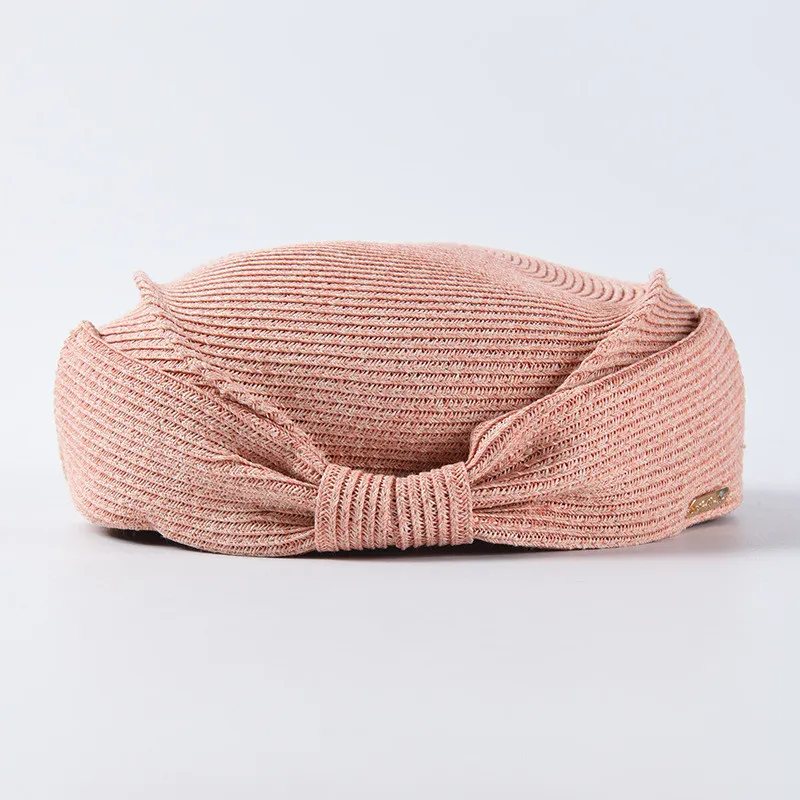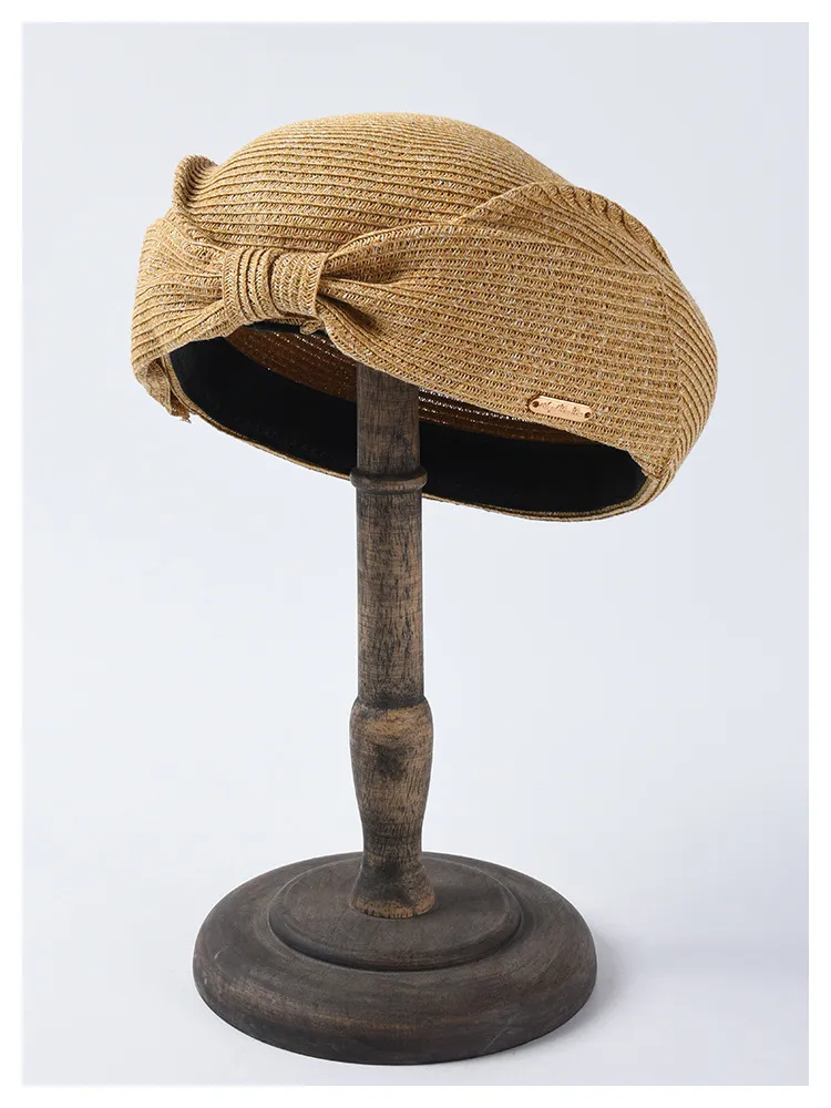 Japanese Straw Beret Summer Hat: Elegant Style with a Feminine Bow