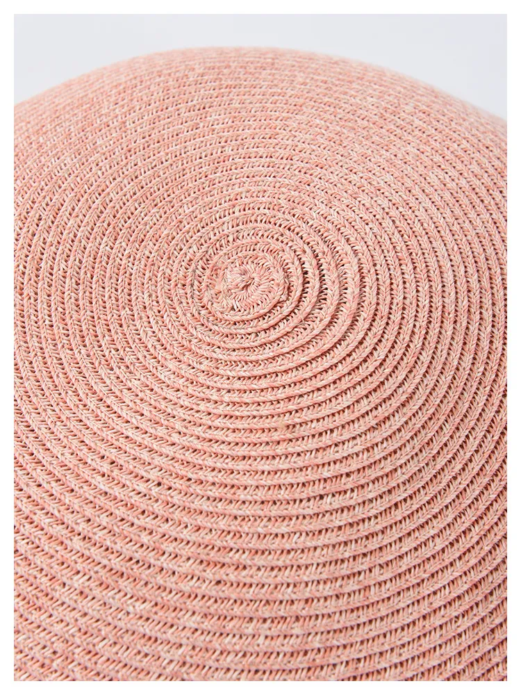 This straw beret features a clean, structured design enhanced by an elegant bow detail that adds a subtle yet stylish touch. The fine woven straw texture reflects superior craftsmanship, offering a lightweight and breathable accessory ideal for summer. Its round beret shape provides a modern twist on traditional straw hats, perfect for women who love effortless, minimalist elegance.