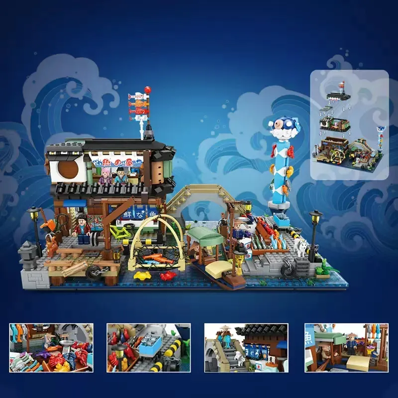 Experience the Charm of Japanese Street Markets with the Japanese Style Fish Stall Building Set