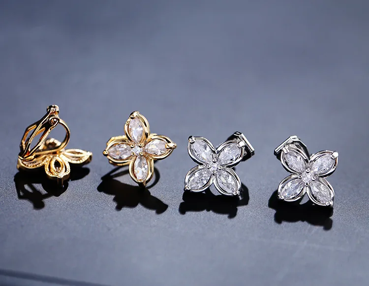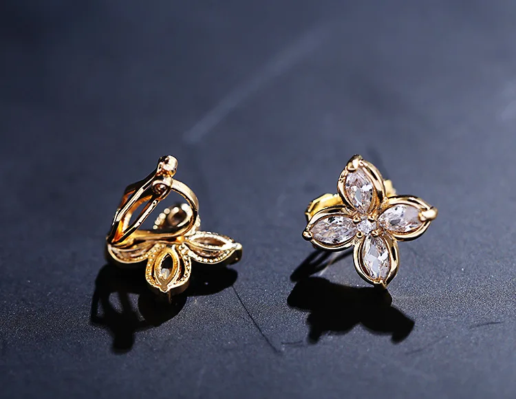 JIOFREE AAA Cubic Zirconia Flower Shape Clip-On Earrings No Piercing Needed