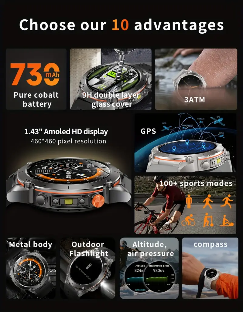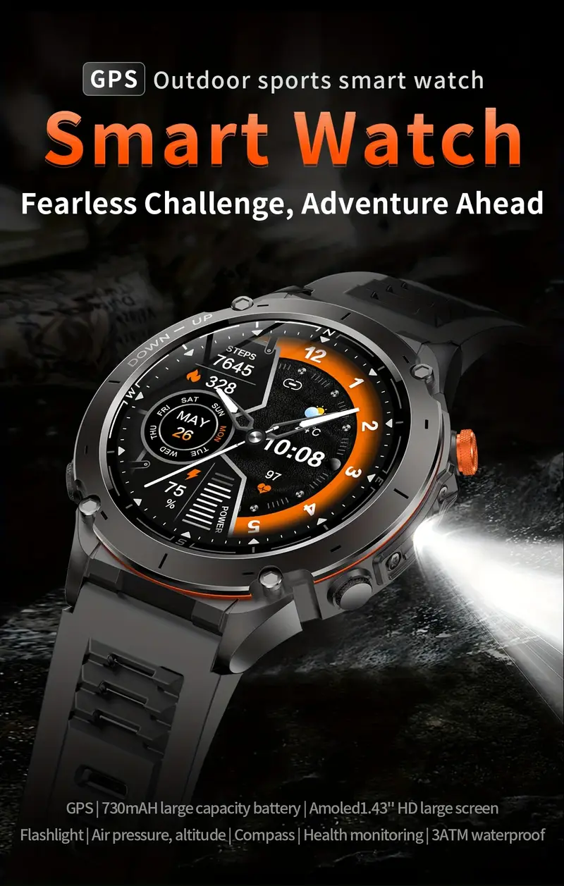 The JJMMK Outdoor Smartwatch delivers everything you need in one durable, smart, and stylish package. Featuring GPS, wireless calls, compass, and 3ATM water resistance, it’s built to perform wherever you go.