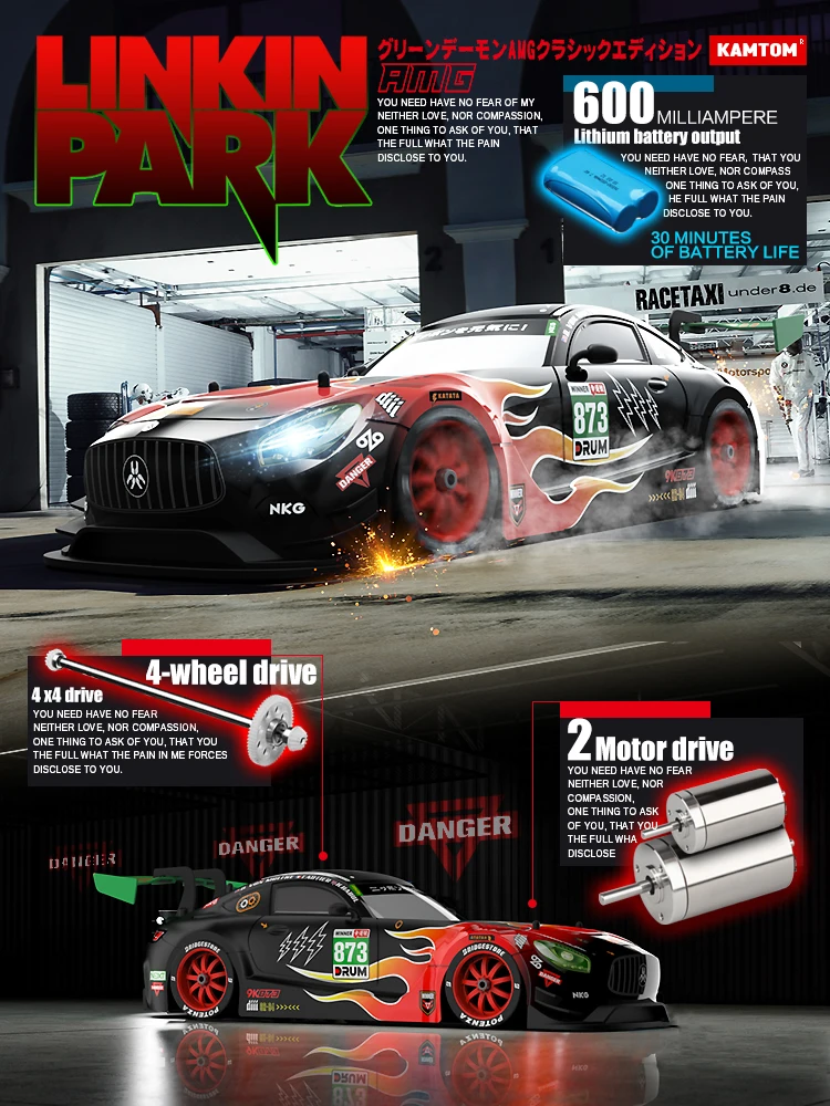Equipped with a powerful motor, the KAMTOM RC car delivers impressive speeds, making it suitable for both indoor and outdoor racing. Its 4WD system ensures excellent traction and stability, allowing for sharp turns and smooth drifts.