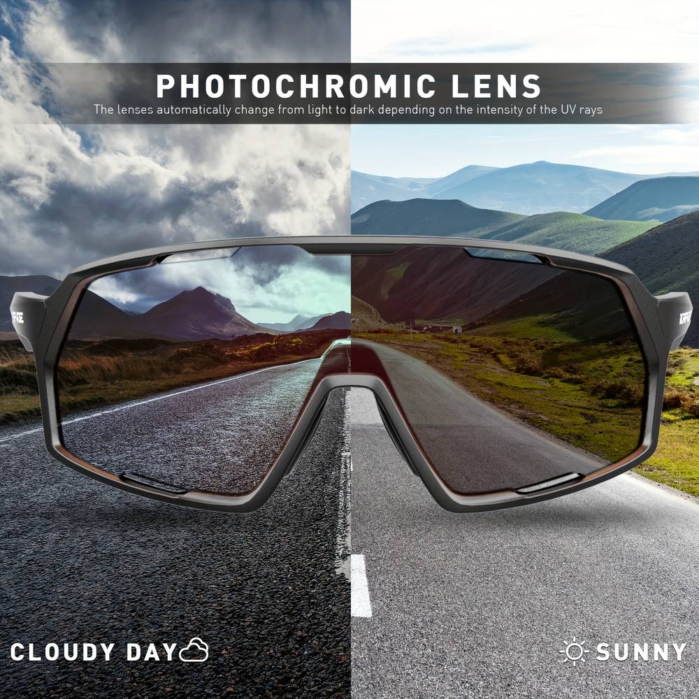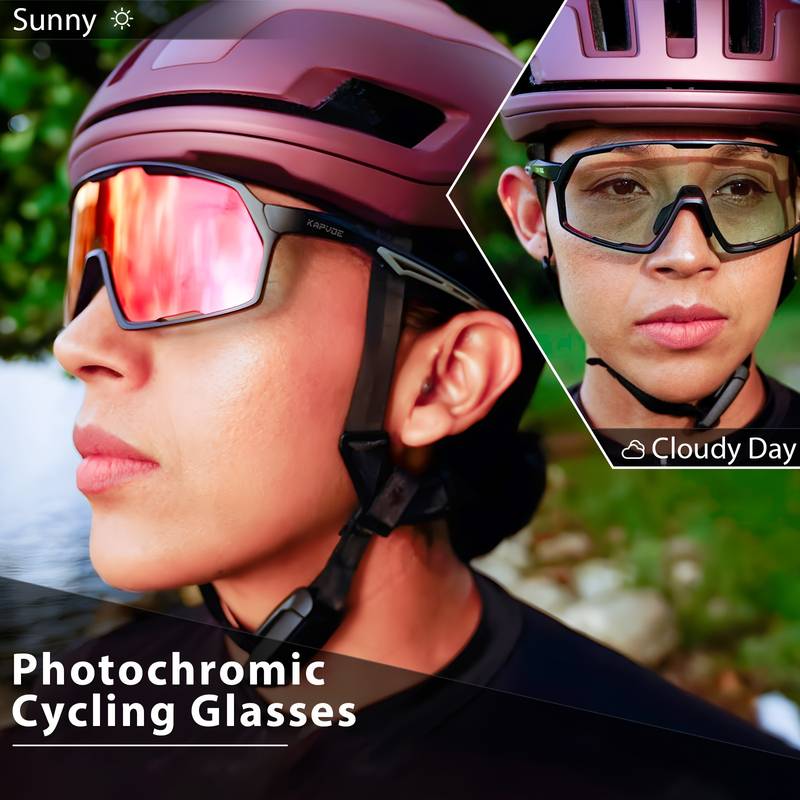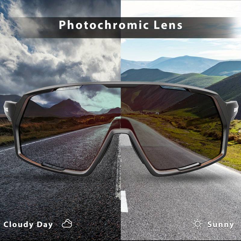 KAPVOE Photochromic Cycling Glasses are the ultimate eyewear for those who love outdoor sports. The photochromic lenses automatically adjust to changing light conditions, providing optimal clarity in both bright sunlight and low-light environments. Made from high-quality polycarbonate (PC) material, the lenses offer excellent optical clarity and are impact-resistant, making them ideal for cycling, mountain biking (MTB), and other outdoor activities.