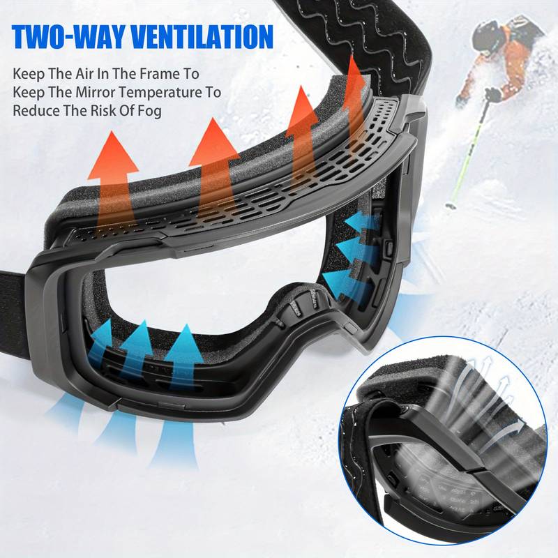 The goggles are designed with a durable TPU frame and polycarbonate (PC) lenses that ensure long-lasting wear and resistance to impact. They also include an anti-fog coating to ensure clear vision even in cold and humid conditions. The adjustable strap provides a secure fit, ensuring comfort and stability throughout your skiing or snowboarding sessions.