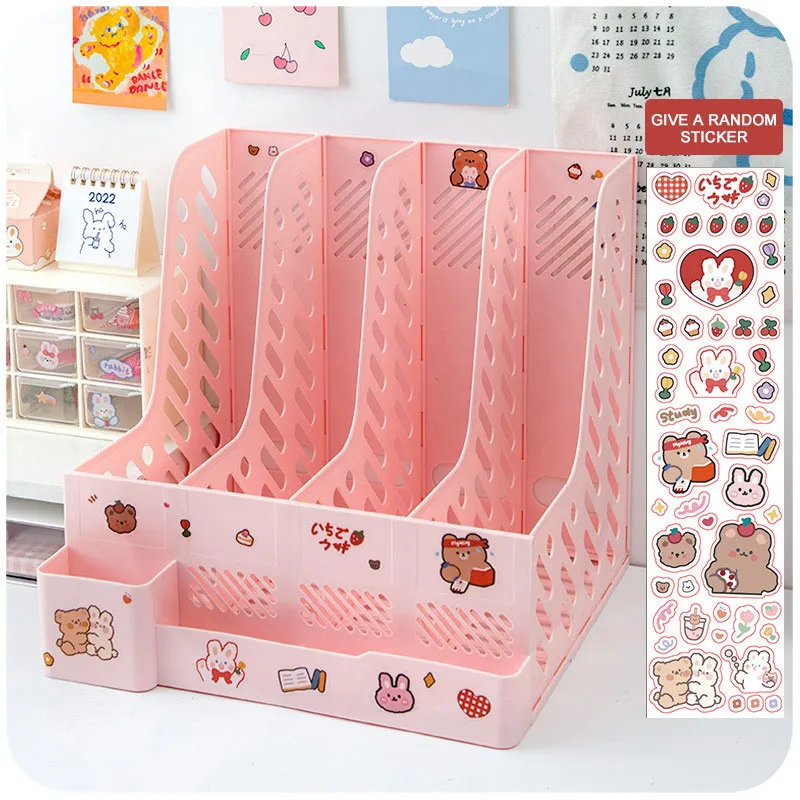 Kawaii Desk Organizer File Tray Book Stand Office Rack