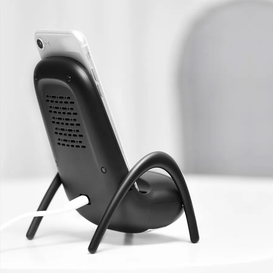 More than just a charger, this device also acts as a phone holder, making it a great accessory for your desk or nightstand. Whether you're watching videos, making video calls, or just need a secure spot to rest your phone, this charger has you covered. Its sturdy design holds your phone in an optimal viewing position while it charges.