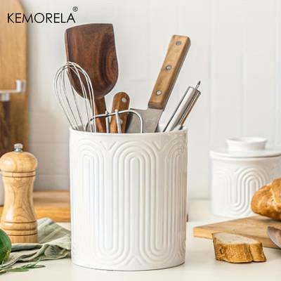 KEMORELA Ceramic Kitchen Utensil Holder Set 1/2pcs Arctic White Embossed Countertop Organizers