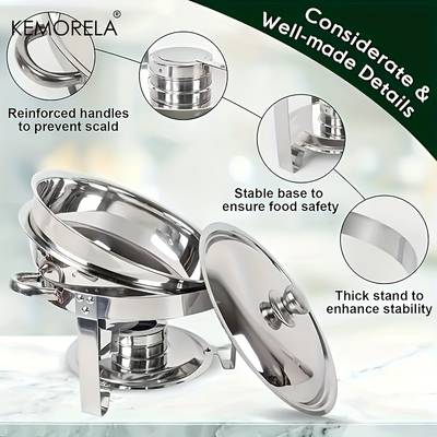 Designed for food contact, this stove is ideal for cooking and serving vegetables, produce, and other dishes during parties, family dinners, or buffet-style meals. Its versatile, power-free design allows for easy use, making it perfect for a variety of occasions. Whether you're hosting a large gathering or an intimate dinner, the KEMORELA Stainless Steel Buffet Stove provides both style and functionality to enhance your dining experience.