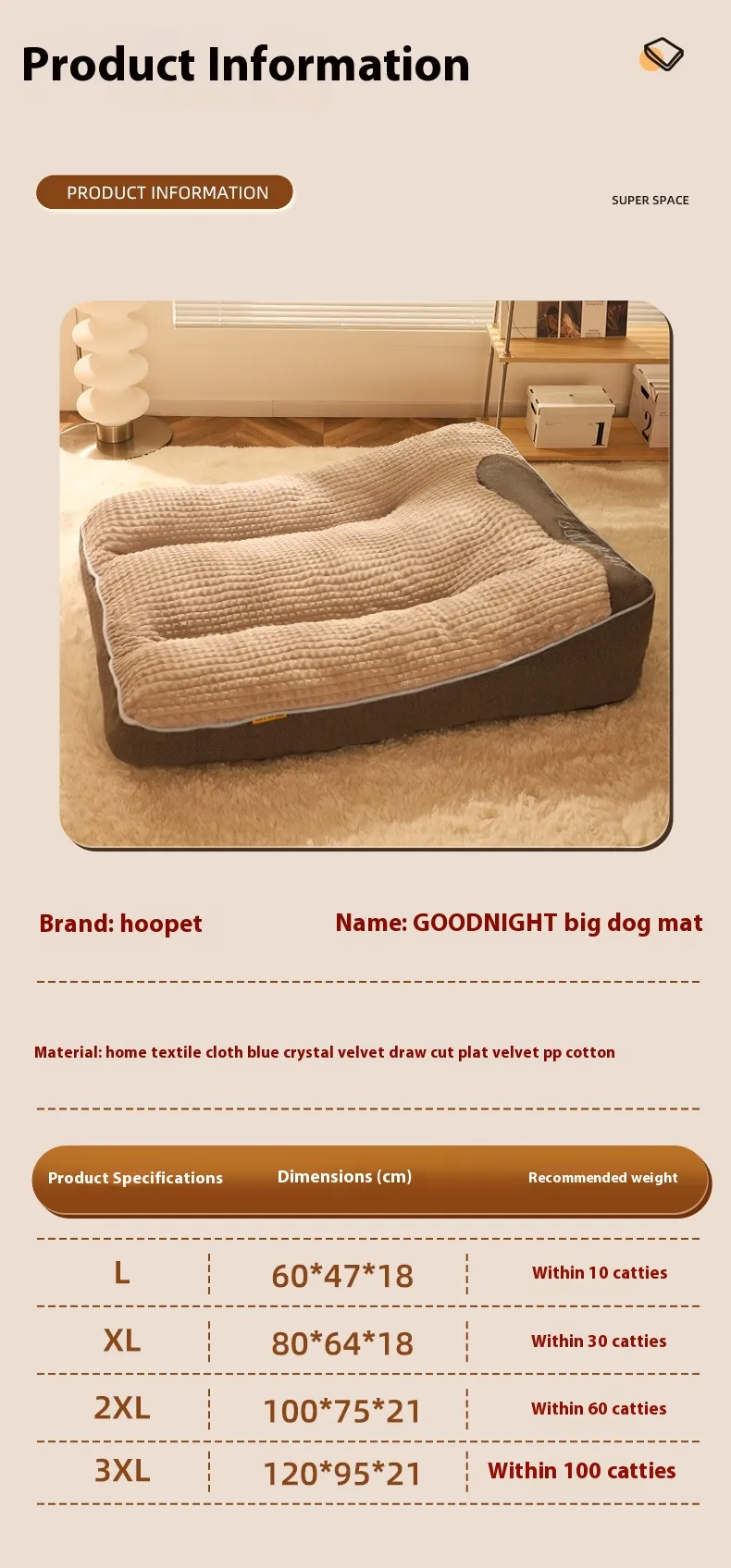 Specification: L small size: Recommended within 10 Jin, XL medium size: Recommended within 30 Jin, 2XL large size: Recommended within 60