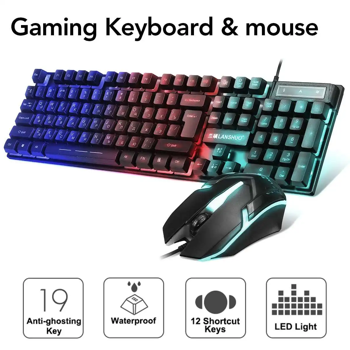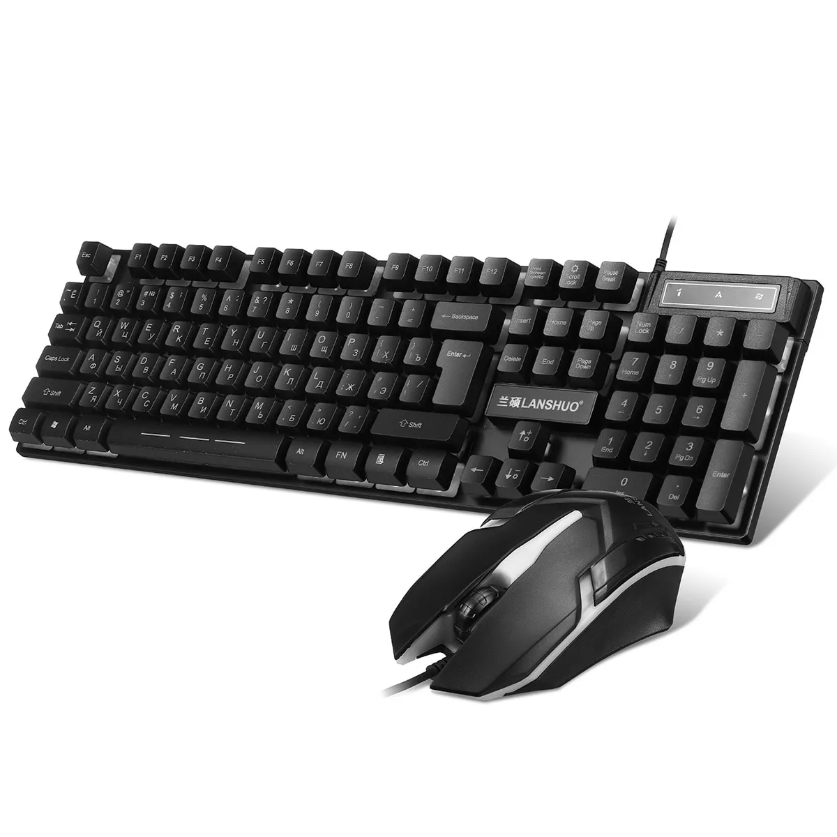 Russian USB wired backlit keyboaRussian USB wired backlit keyboard and mouse set