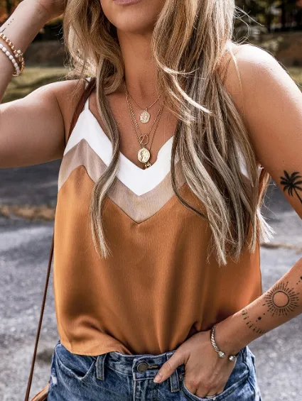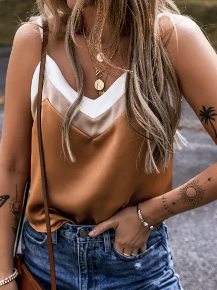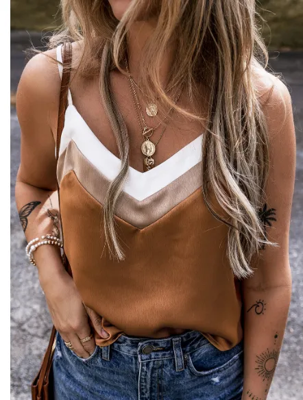 Crafted from soft, breathable fabric, it’s lightweight and airy, offering all-day comfort. The adjustable spaghetti straps provide a customizable fit, while the bold color block design adds visual interest and a slimming effect to the silhouette. Pair it with denim shorts, wide-leg trousers, or skirts for an effortlessly chic look.