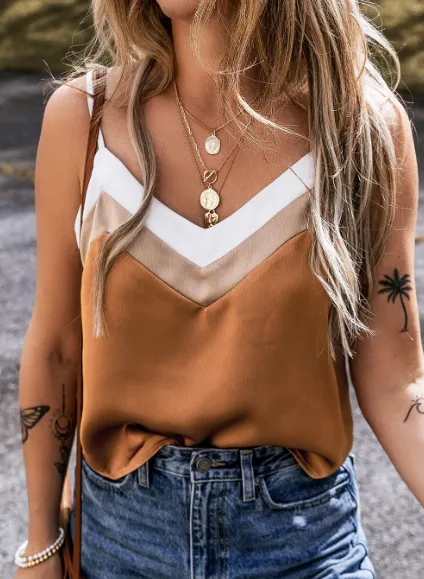 Add a pop of modern charm to your summer wardrobe with the Khaki Chevron Color Block Spaghetti Straps Tank Top. Featuring a flattering chevron pattern in neutral khaki tones, this tank top blends timeless style with a relaxed fit—perfect for sunny days, beach outings, festivals, or weekend getaways in New Zealand.