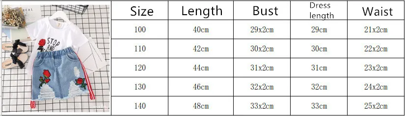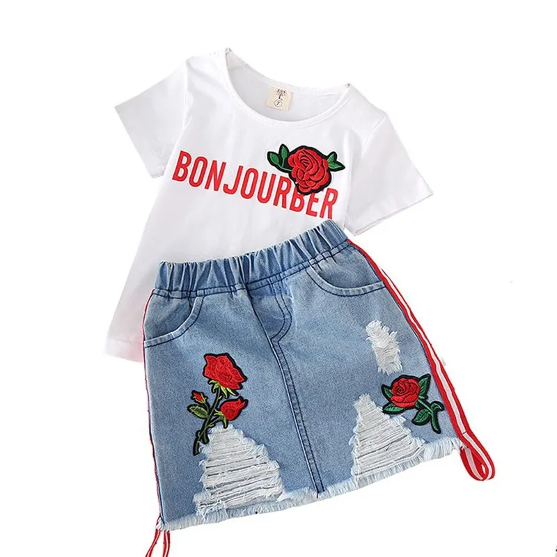 Kids Clothes White T-shirt Denim Skirt 2pcs Girls Suits