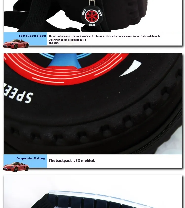 Kid's Small Schoolbag Personalized Creative 3D Cartoon Tire Kindergarten