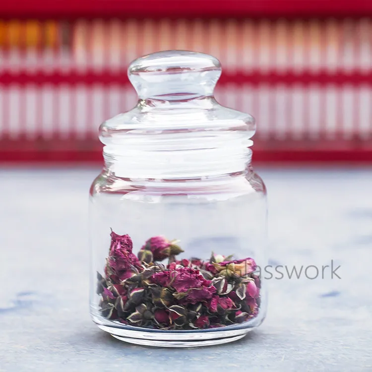 - Transparent glass body for easy visibility of contents.