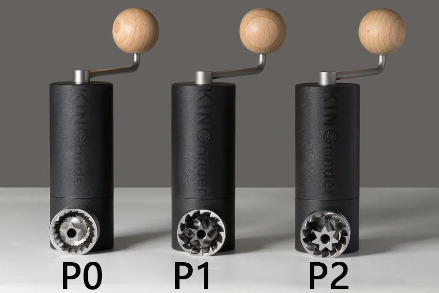 P0: Features 5-point conical burrs for a smoother, coarser grind. Ideal for Moka pot and French press brewing.