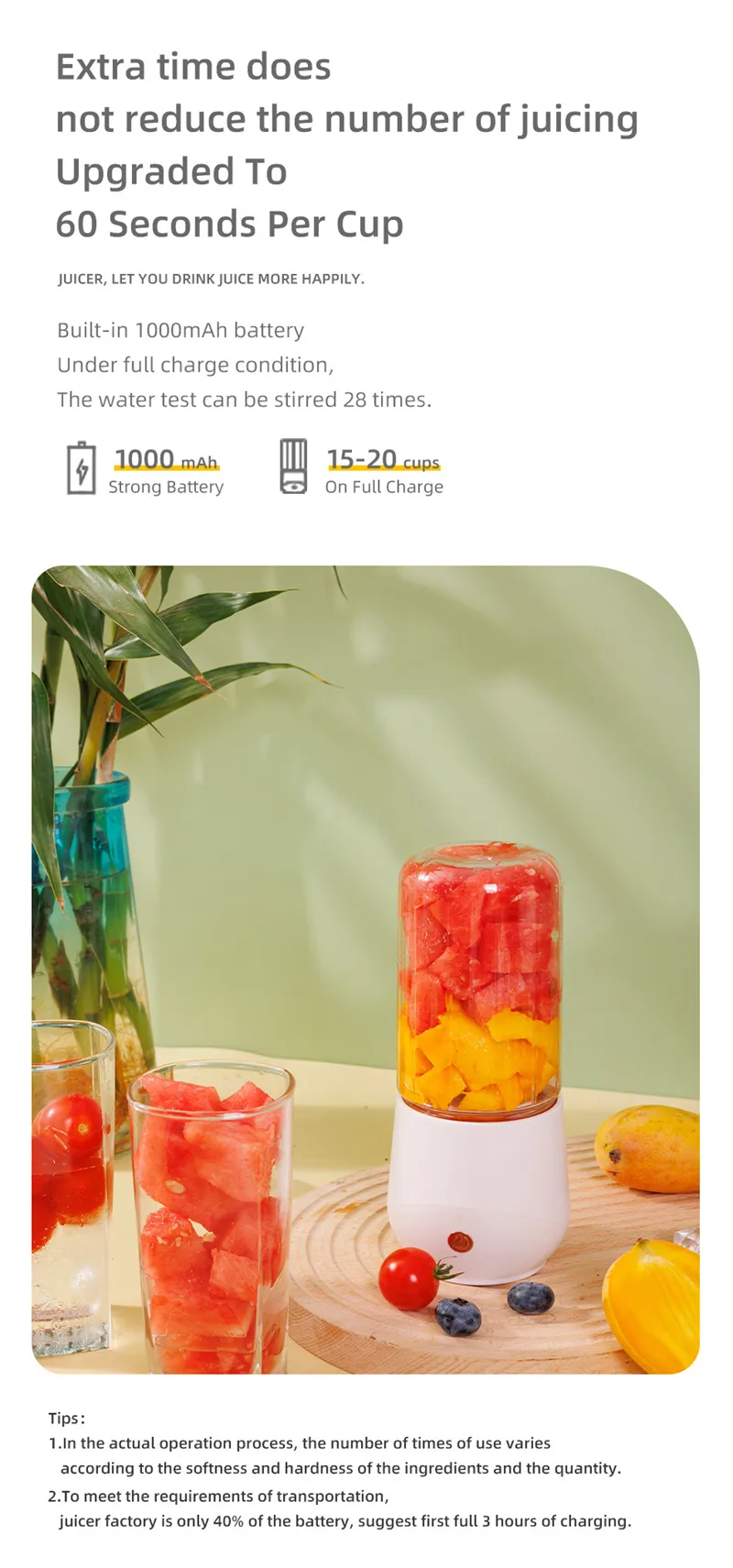Kitchen Blender Cup Personal Blender Mini Fruit Juicer Mixer Portable Electric Juicer For Smoothie Fruit Juice Milk Shake