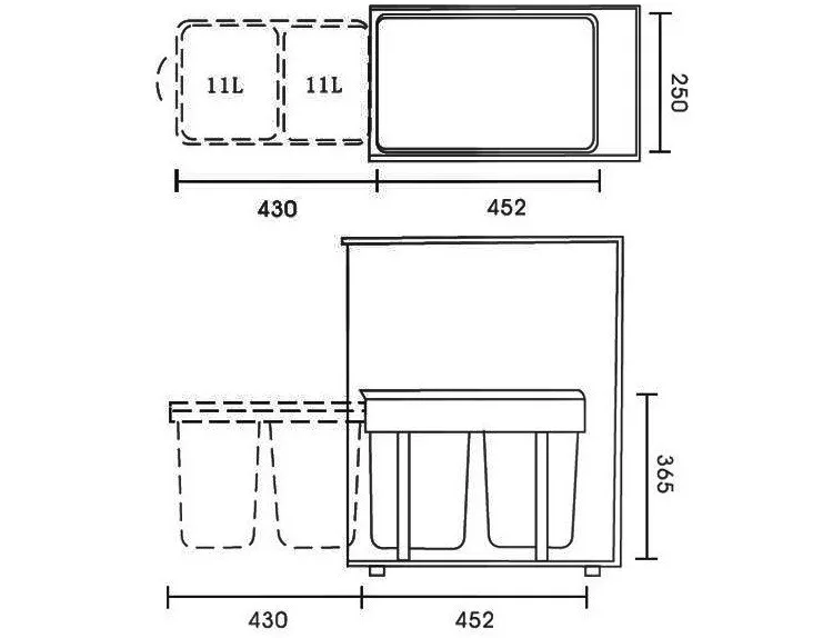 - Design: Pull-out drawer system, multiple bins for waste sorting