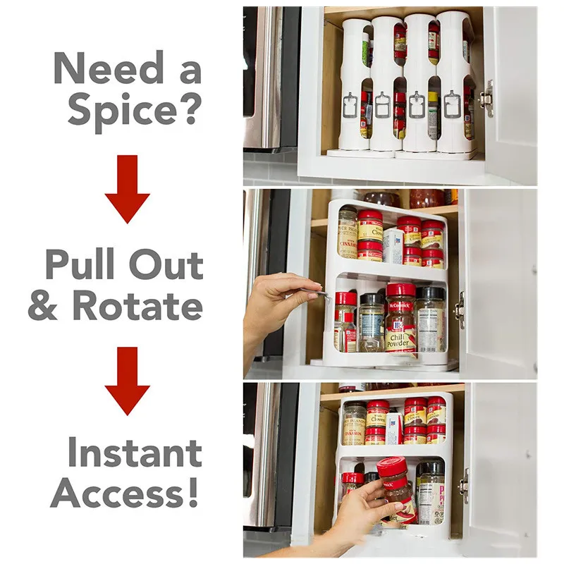 Invest in the Kitchen Double Tier Spice Rack Multifunctional Rotating Storage Rack today and enjoy an organized, efficient, and stylish kitchen that makes meal preparation a breeze.