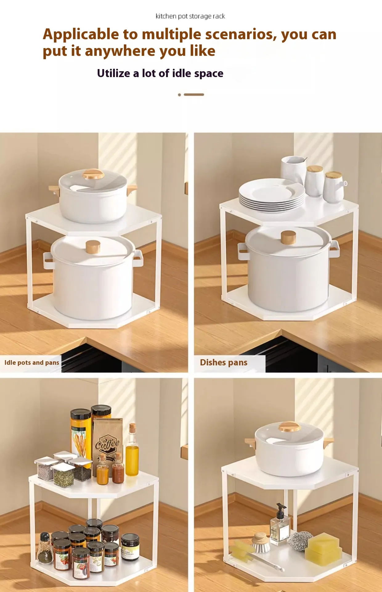 Kitchen Fan-shaped Pot Rack Corner Seasoning Storage