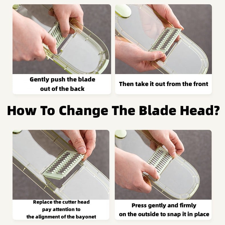 While Using Multi-Purpose Vegetable Slicer Cuts, push the food downward towards the blade rather than pulling towards you because it is 8x faster than other slicers.