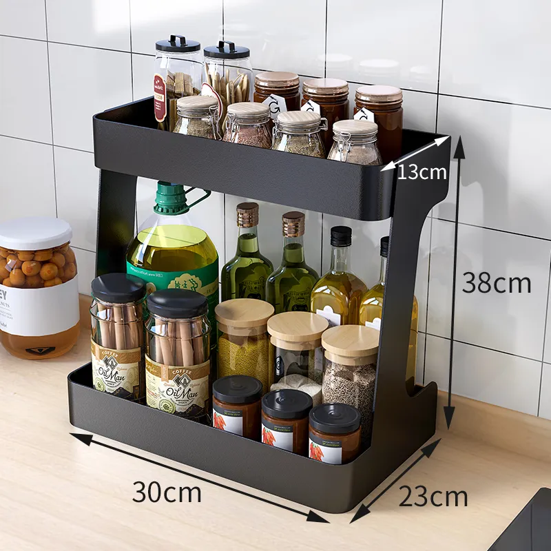 Double-Layer Design: Two levels of storage provide ample space for organizing kitchen essentials, maximizing vertical space