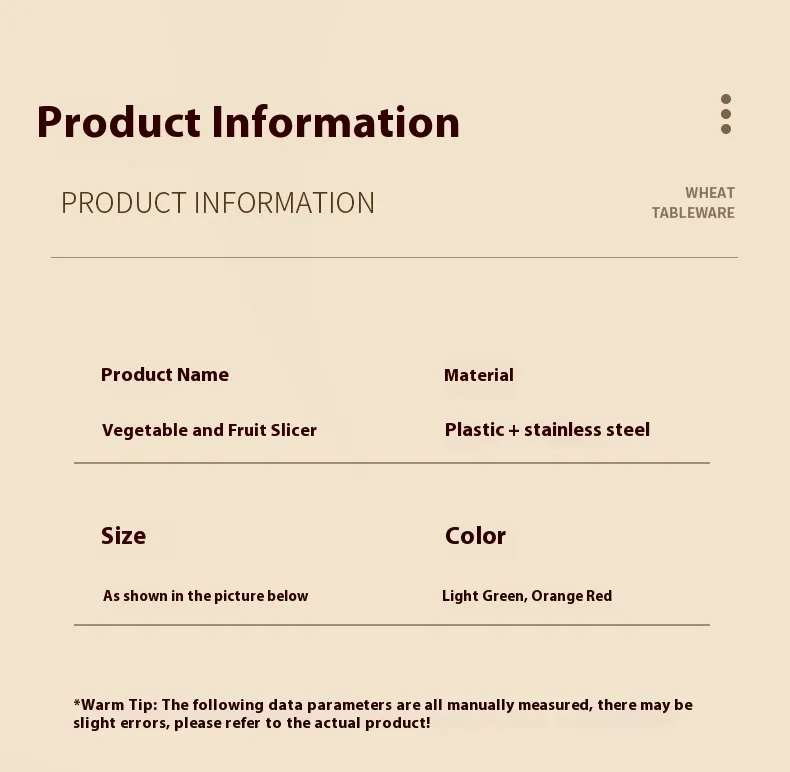 Specifications: fruits and vegetables slicer [green】, fruits and vegetables slicer [red]